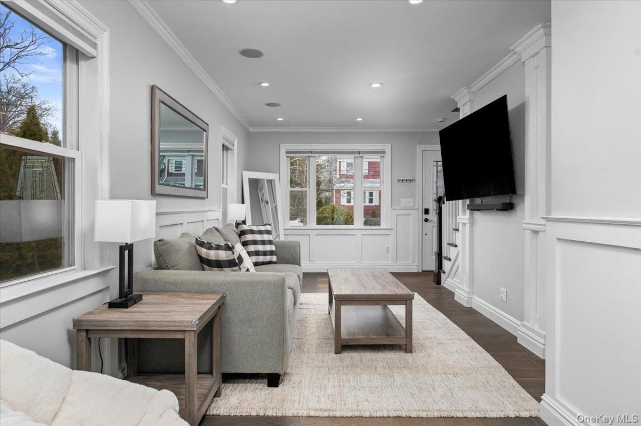 Carefree living in a prime Mamaroneck location! This sunny, beautifully renovated 2-bedroom, 1.5-bath home features an open floor plan with a bright living room and a stunning white eat-in kitchen with quartzite countertops and stainless steel appliances. Sliding glass doors open from the kitchen to a deck and patio-perfect for indoor-outdoor entertaining. An updated powder room completes the main level. Upstairs, the primary bedroom boasts a vaulted ceiling and walk-in closet, plus one additional bedroom with closet and a stylish hall bath. Central heat and AC on both levels. The finished lower level (not included in sq footage) offers a versatile rec room, laundry, and abundant storage. Single-unit home, a separate, detached residence is located on the rear of the property. Unbeatable location: Florence Park is one house away with basketball courts, tennis courts, 1/3 mile jogging/walking path around park, and playground apparatus.The Mamaroneck Metro-North station (express trains to NYC), schools, shops, Harbor Island Park & Beach, and the vibrant downtown are all in the village.