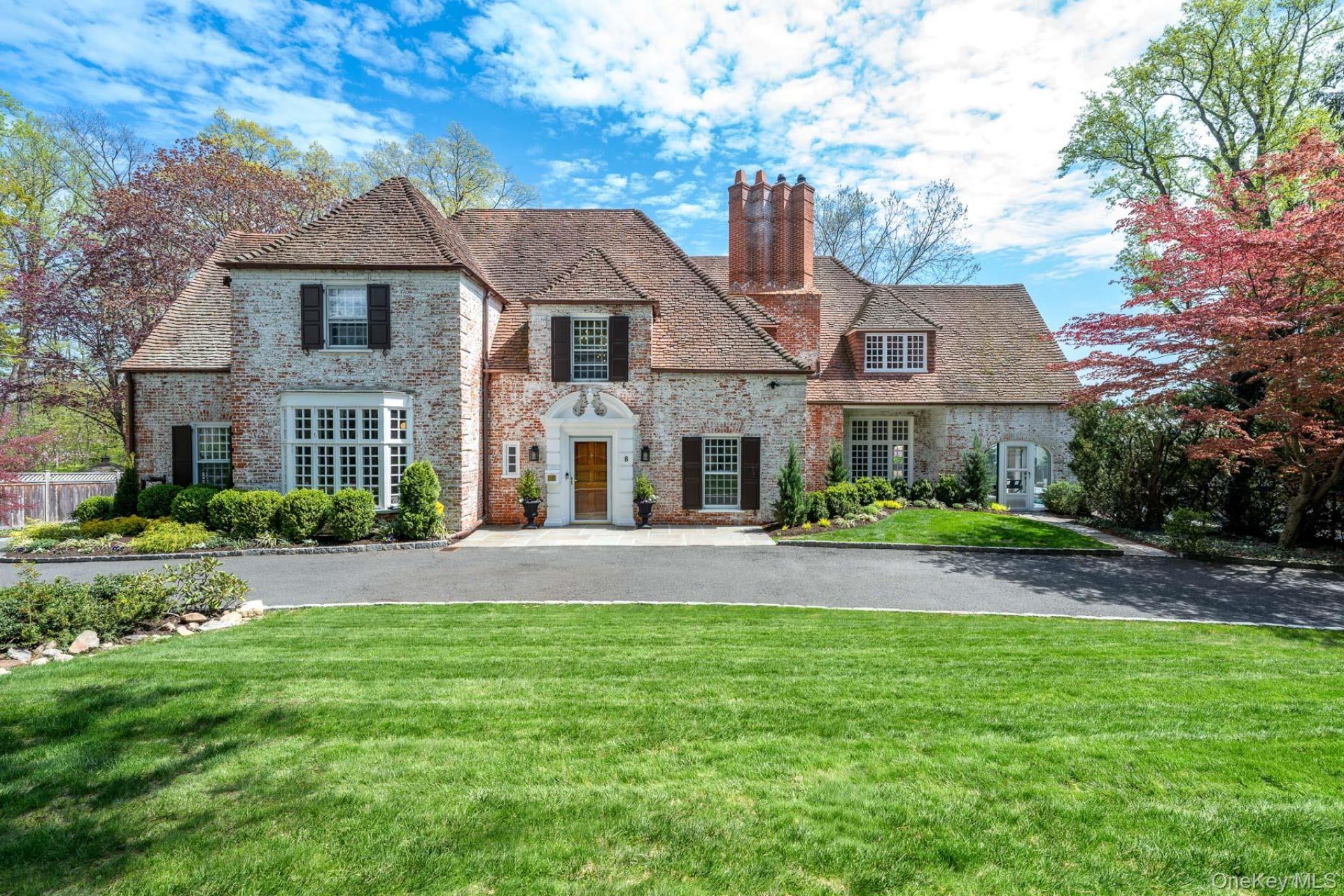 Situated on over half an acre of lushly landscaped property, 8 Rittenhouse is a remarkable whitewashed brick French Country manor featuring asculpted brick chimney, varied rooflines, and pristine exterior stonework, designed by the venerated architect Lewis Bowman. A semi-circulardriveway welcomes you, and upon entering the home, you are immediately struck by the light and openness created by the two-story entrancehall. A sunken living room features an impressive fireplace with a carved mantel, a built-in bar, and elegant elliptical windows-offering a trulycaptivating space. The living room flows into an inviting sunroom that overlooks the grotto-style black-bottom pool, jacuzzi, and waterfall,creating a natural amphitheater-like setting that is truly one of a kind. The home offers an oversized kitchen with top-of-the-line appliances,adjoined by a breakfast area and a formal dining room. The first floor is completed by a charming library or office and a powder room. Thesecond level features a primary suite with a newly renovated spa-like bathroom, complete with a soaking tub, double vanity, and radiant heatedfloors. There are three additional family bedrooms, two full bathrooms, and guest quarters accessed from both the kitchen and the second floor.The lower level offers a versatile space for hobbies, a gym, and play, along with a laundry area and ample storage. Beyond the enchanting pool isa flat, usable yard ideal for play, as well as an entertaining terrace that connects the kitchen to the pool area for seamless indoor-outdoor living.A terra-cotta roof, full-house generator, two-car garage, new copper gutters, and more complete this exceptional offering.